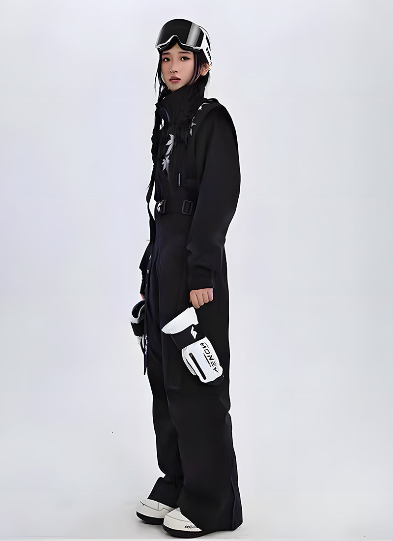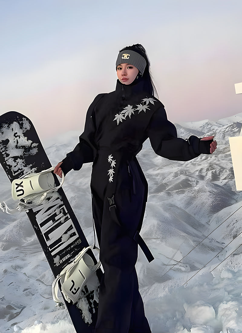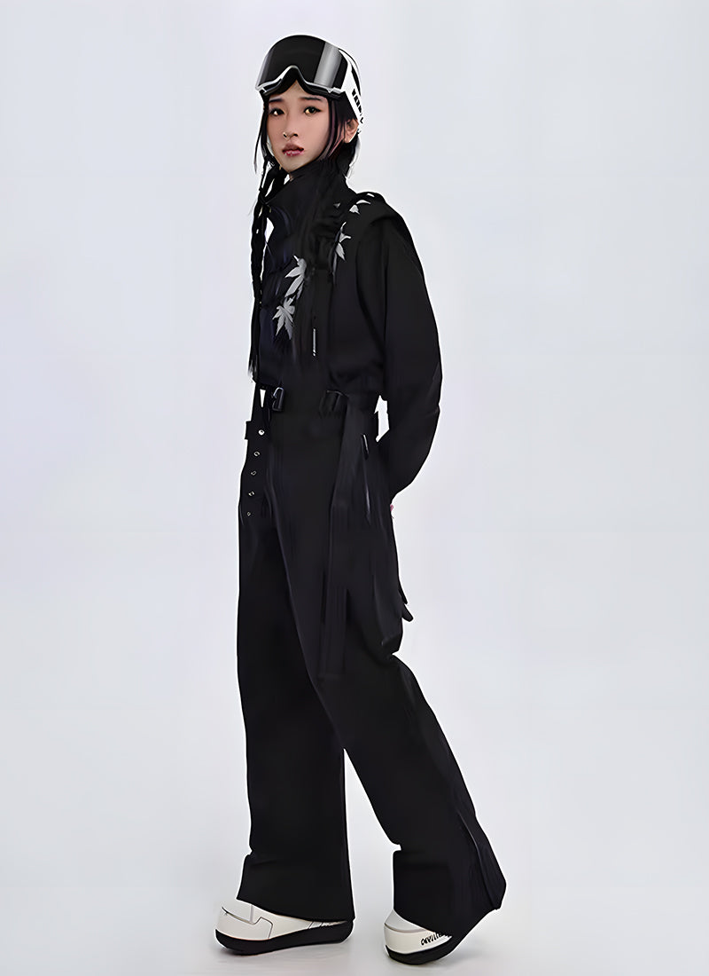アバンギャルド OXFORD 上下セット ウィメンズはニッチな古風モードを纏う、個性派の女性用スノーセット。実用性に優れたオックスフォードを採用し、雪や風をしっかり遮りつつムレを抑え、撥水性と耐摩耗性で長時間の使用でも快適です。取り外し可能なショルダーストラップで着こなしをアレンジでき、太もも内側ベンチレーションが熱気を素早く逃がします。存在感のある和モダンなデザインと軽快な着心地で、リゾートのロングランから雪山トリップ、写真映えを狙うタウン寄りのスタイルまで幅広く活躍します。