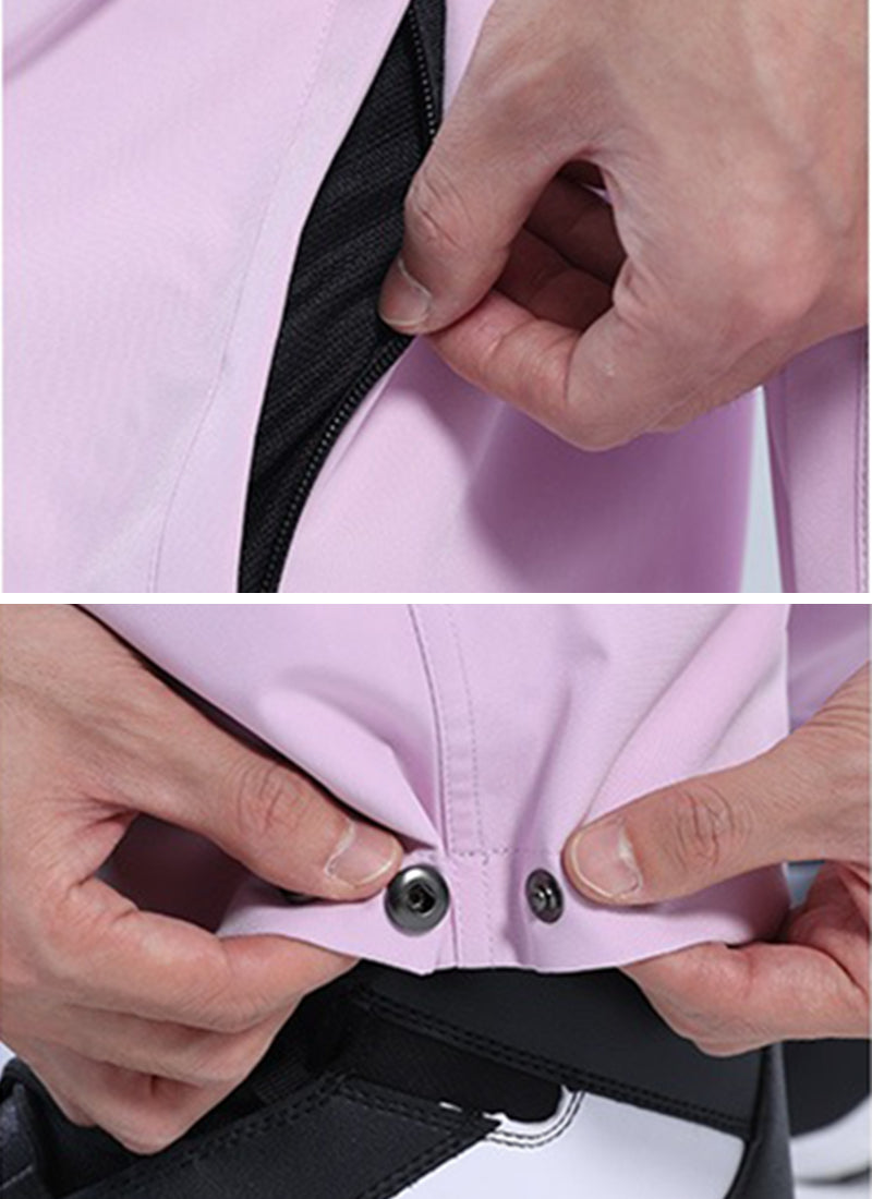 調整可能な袖口・裾・ウエスト、ベンチレーションファスナー付く脇下と太ももの内側