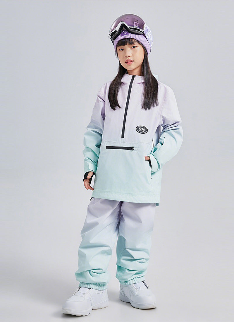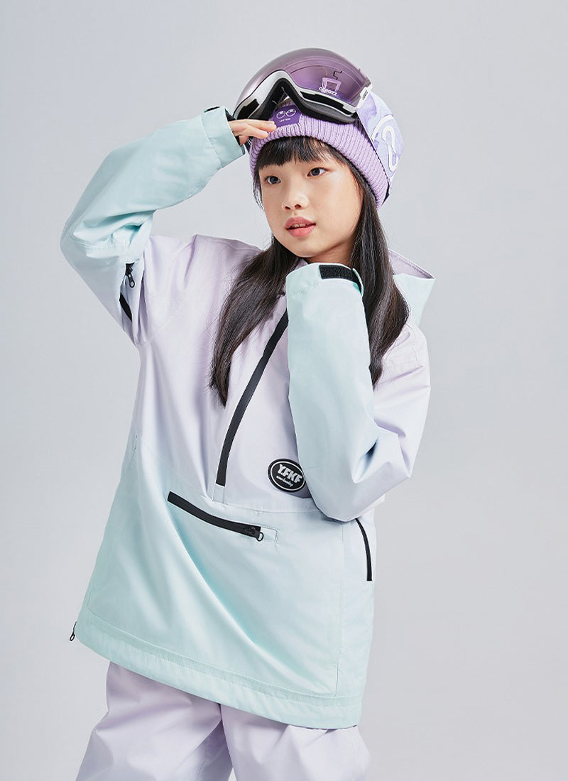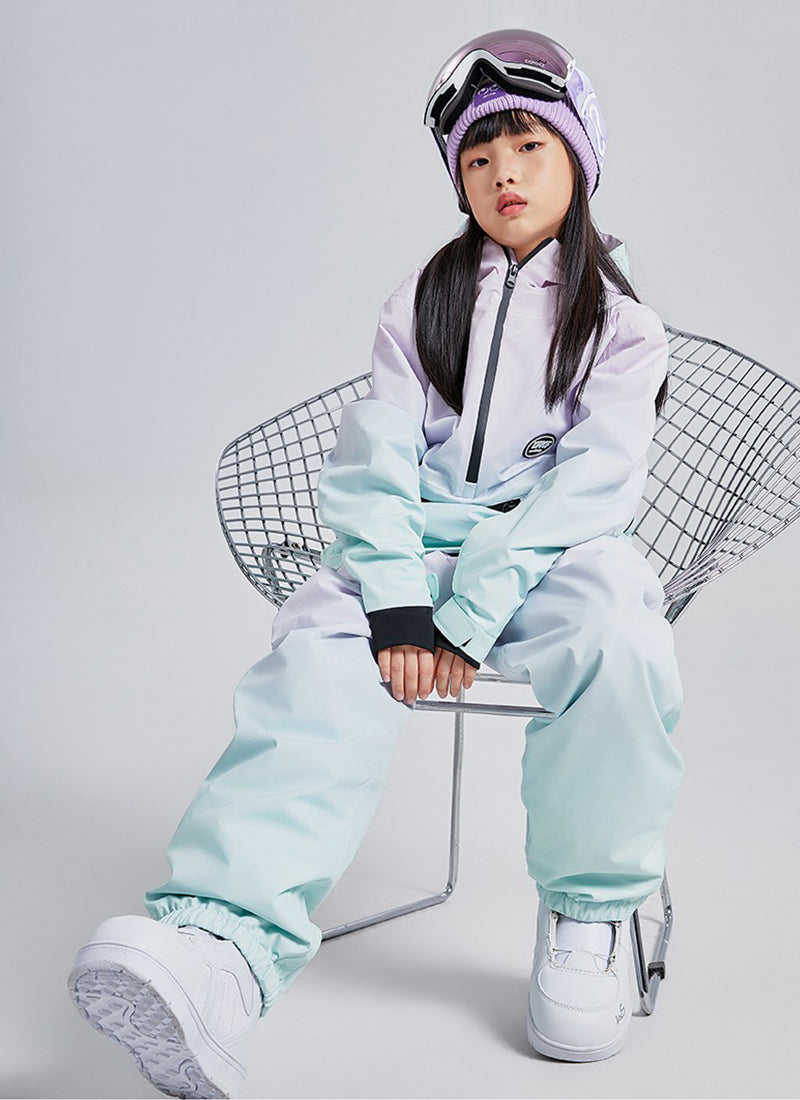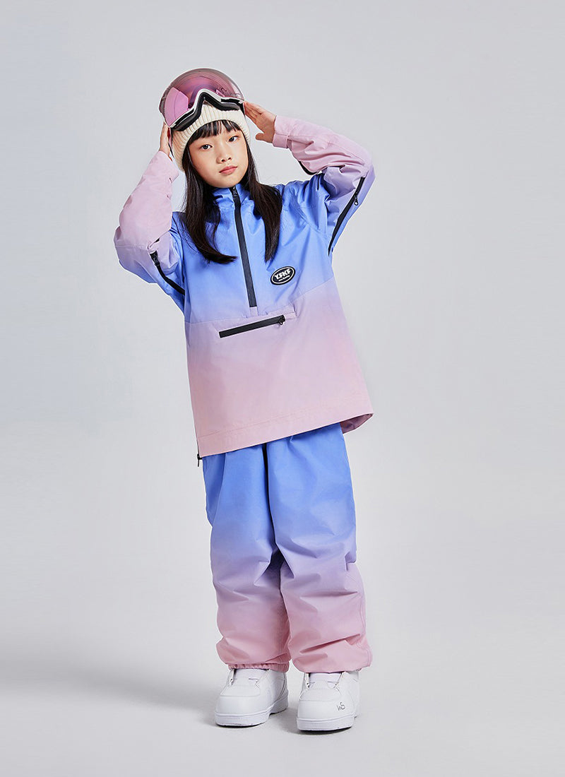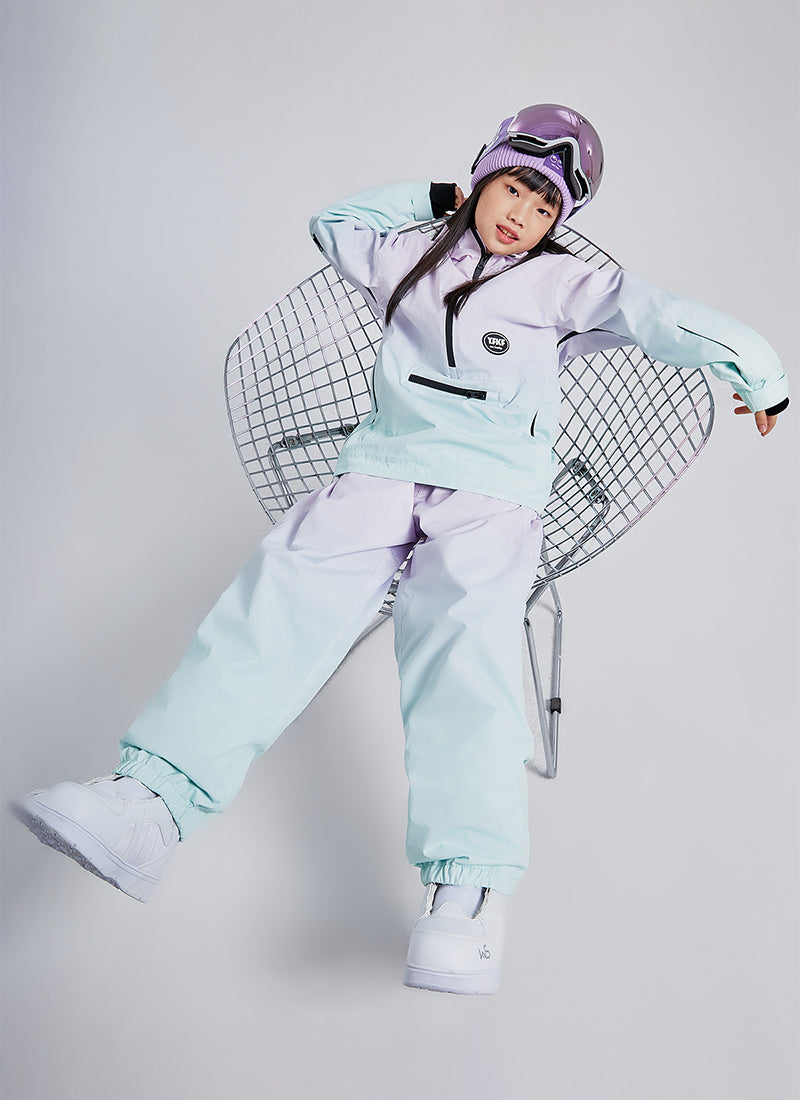 エッジィ TEFLON 上下セット キッズは柔らかなグラデーションカラーが印象的なキッズスノーウェア。全ての縫い目に防水シーム加工を施し、雪や冷気の侵入をしっかり防ぎながら、身体を暖かく快適に保ちます。子どもの動きに合わせて細かく調整可能で、さらに脇下のベンチレーションジッパーが、運動時の蒸れを効率よく逃がしてくれます。雪用ポケットを配置し、機能性にも優れた、成長期のお子さまに頼れる一着です。