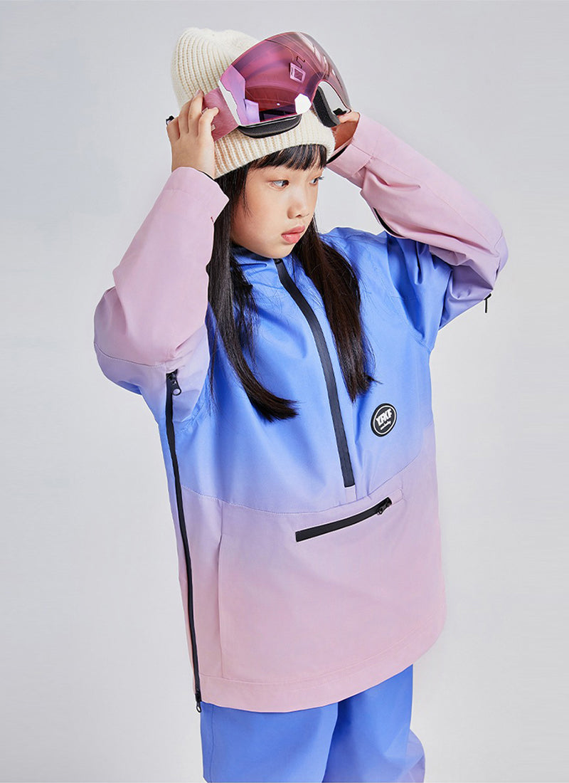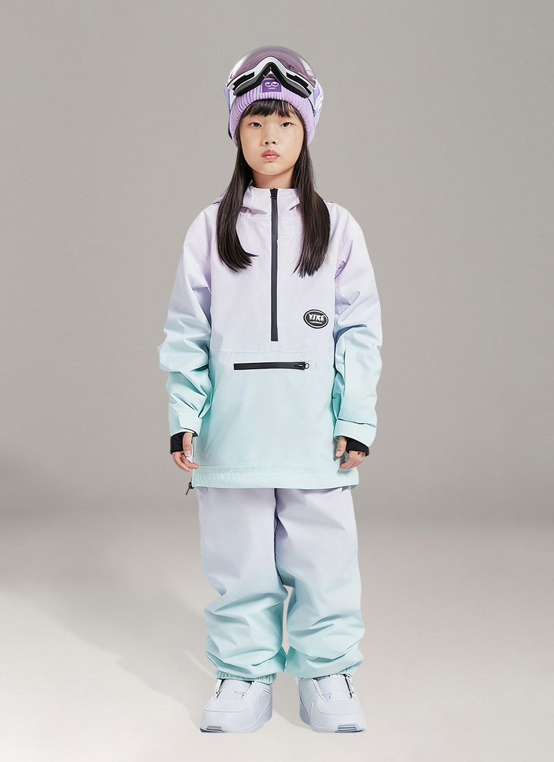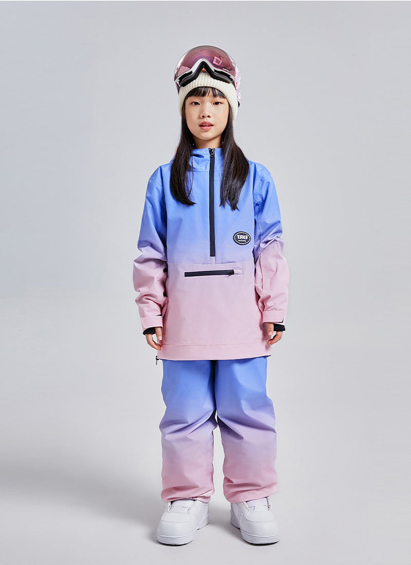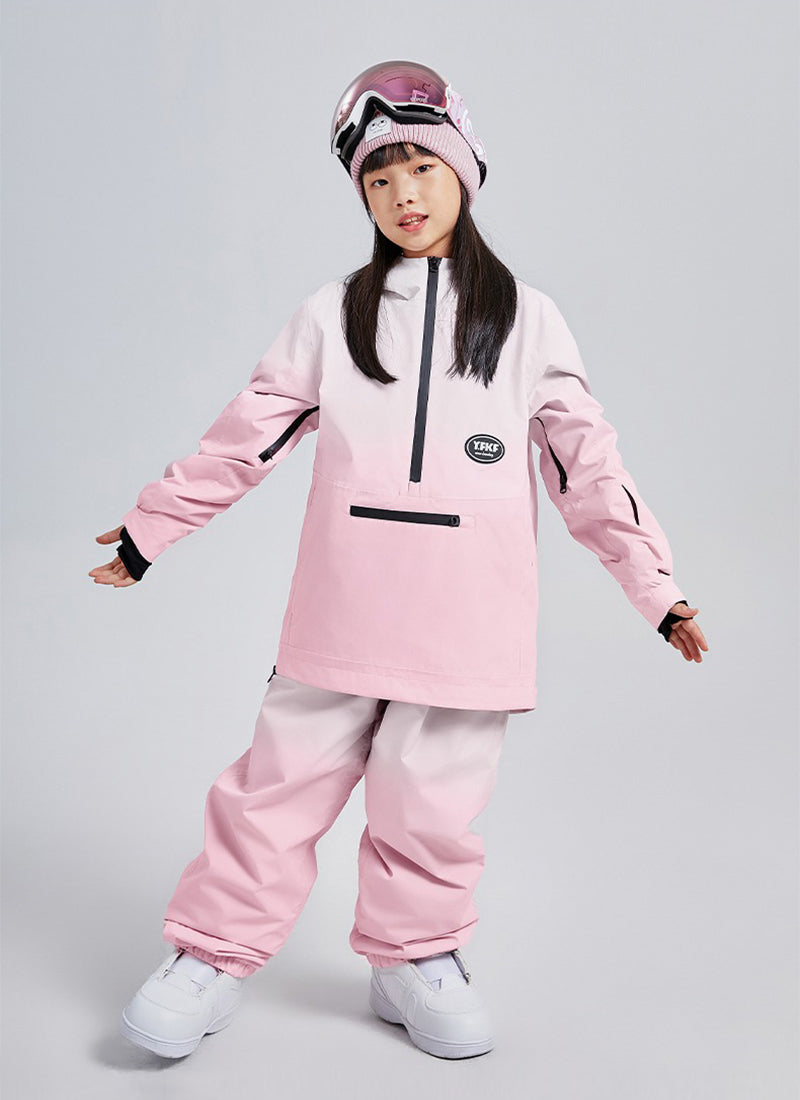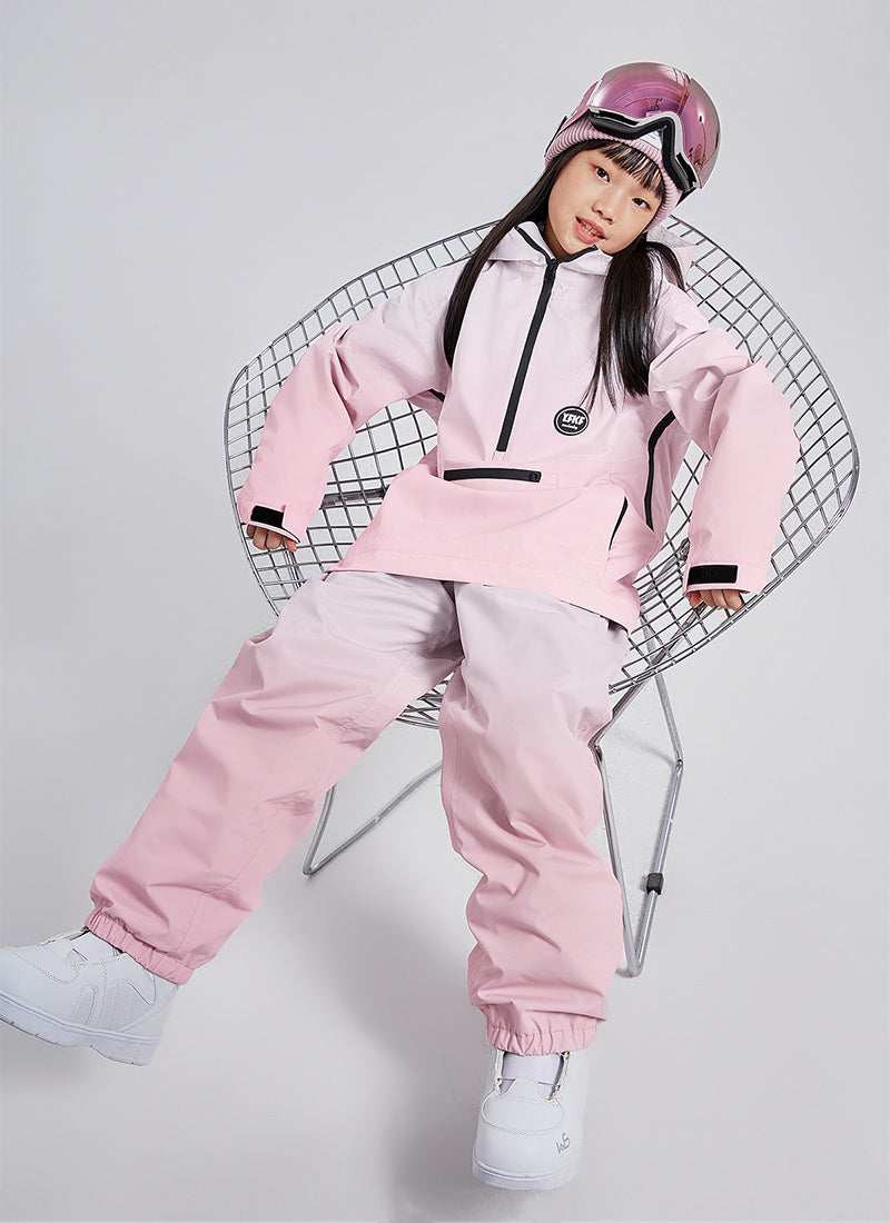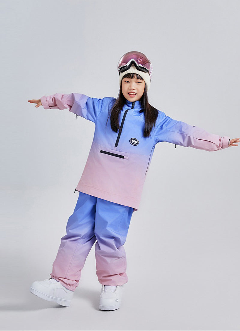 エッジィ TEFLON 上下セット キッズは柔らかなグラデーションカラーが印象的なキッズスノーウェア。全ての縫い目に防水シーム加工を施し、雪や冷気の侵入をしっかり防ぎながら、身体を暖かく快適に保ちます。子どもの動きに合わせて細かく調整可能で、さらに脇下のベンチレーションジッパーが、運動時の蒸れを効率よく逃がしてくれます。雪用ポケットを配置し、機能性にも優れた、成長期のお子さまに頼れる一着です。