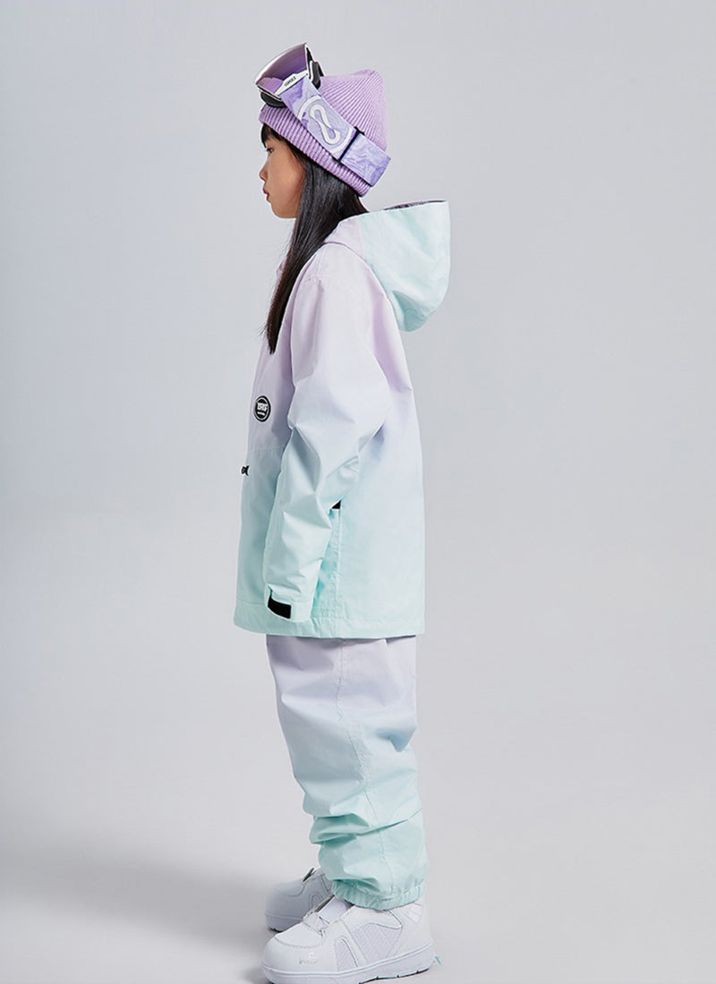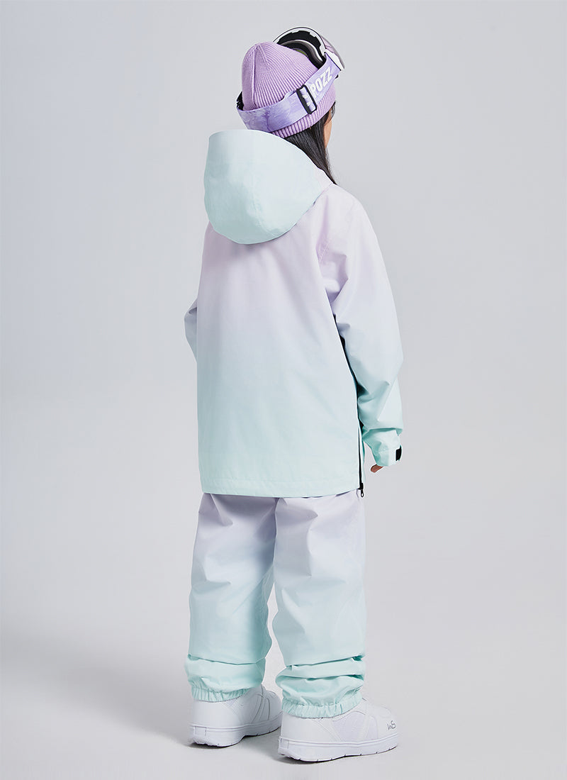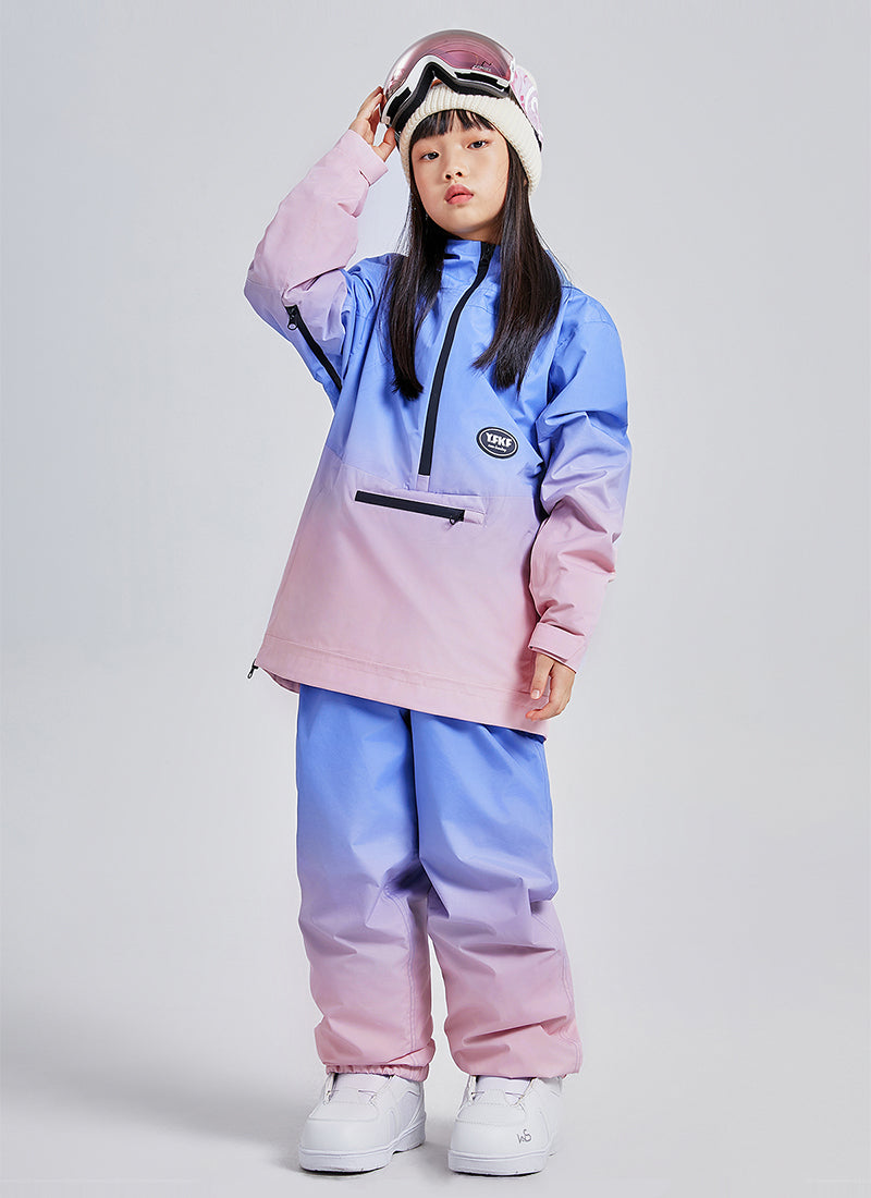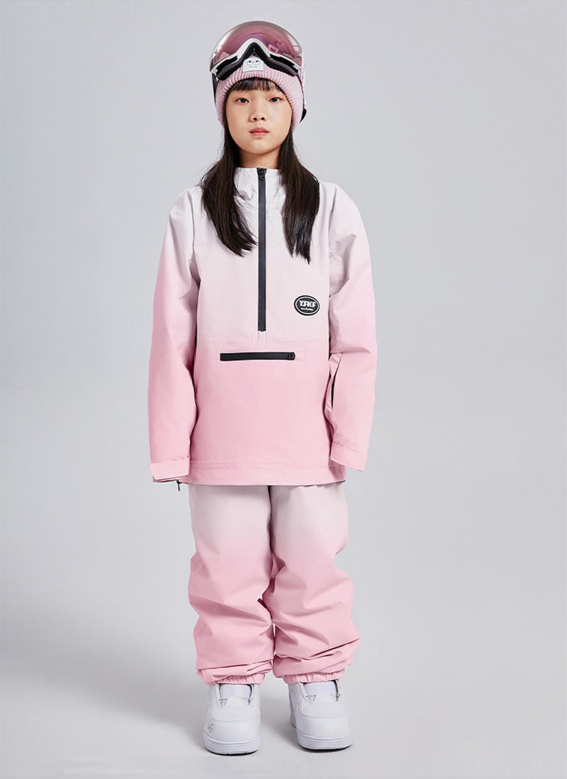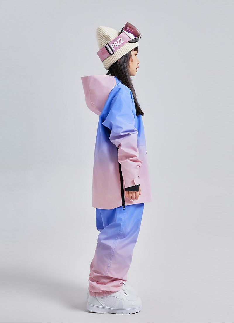 エッジィ TEFLON 上下セット キッズは柔らかなグラデーションカラーが印象的なキッズスノーウェア。全ての縫い目に防水シーム加工を施し、雪や冷気の侵入をしっかり防ぎながら、身体を暖かく快適に保ちます。子どもの動きに合わせて細かく調整可能で、さらに脇下のベンチレーションジッパーが、運動時の蒸れを効率よく逃がしてくれます。雪用ポケットを配置し、機能性にも優れた、成長期のお子さまに頼れる一着です。