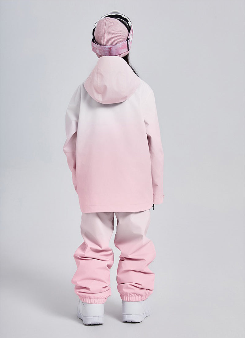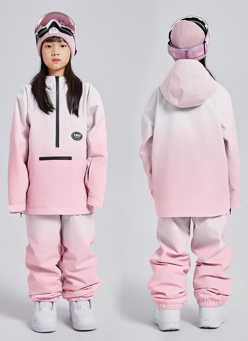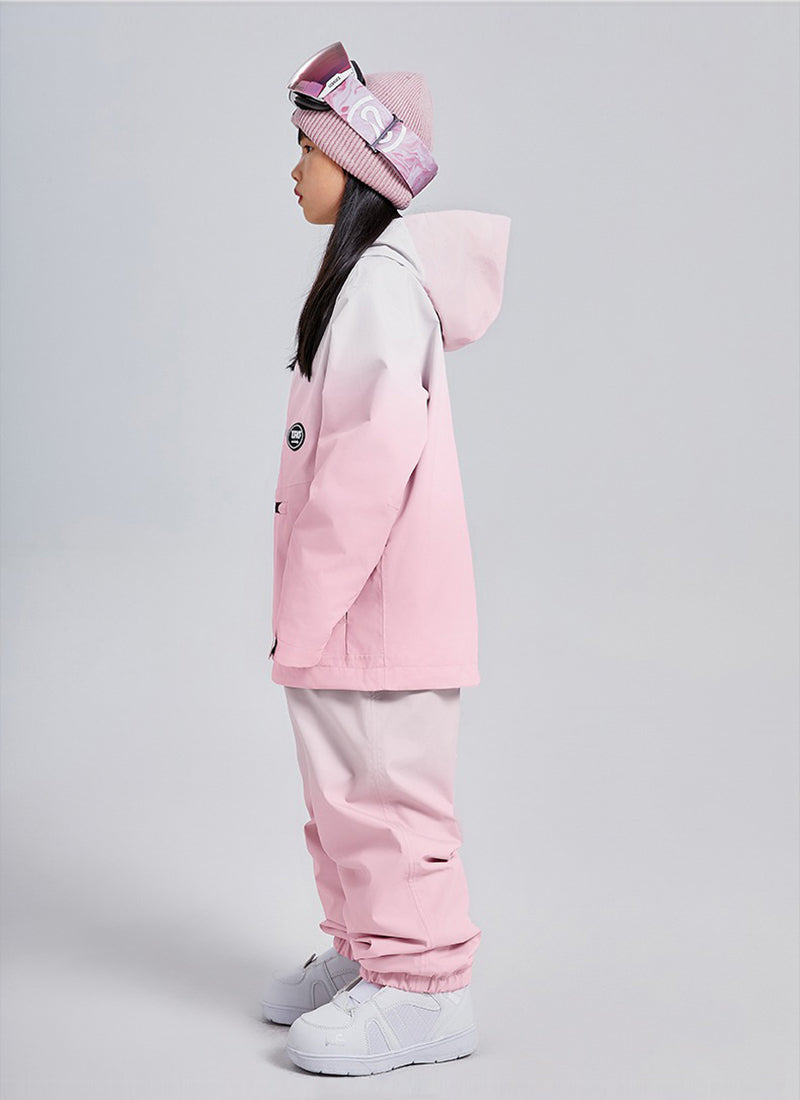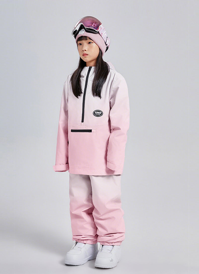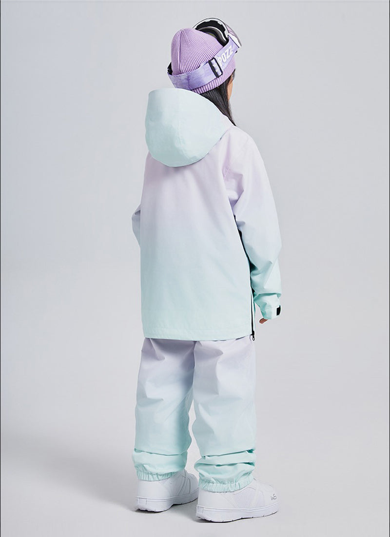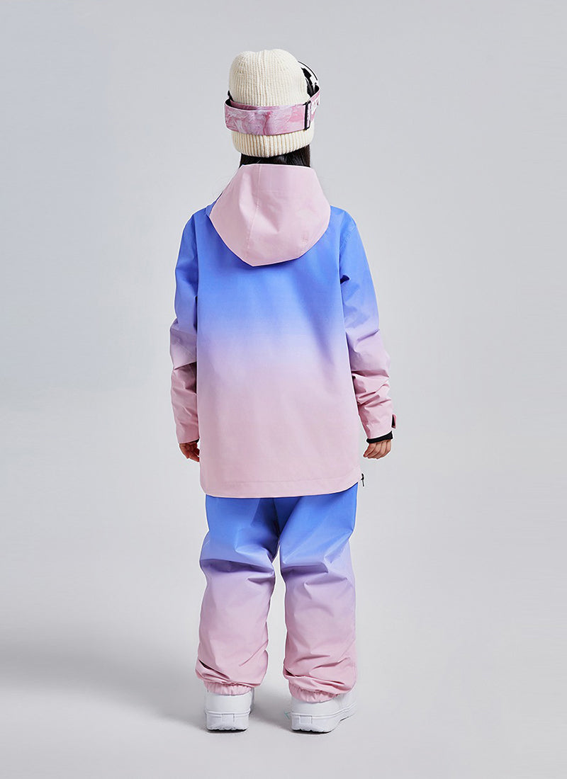 エッジィ TEFLON 上下セット キッズは柔らかなグラデーションカラーが印象的なキッズスノーウェア。全ての縫い目に防水シーム加工を施し、雪や冷気の侵入をしっかり防ぎながら、身体を暖かく快適に保ちます。子どもの動きに合わせて細かく調整可能で、さらに脇下のベンチレーションジッパーが、運動時の蒸れを効率よく逃がしてくれます。雪用ポケットを配置し、機能性にも優れた、成長期のお子さまに頼れる一着です。