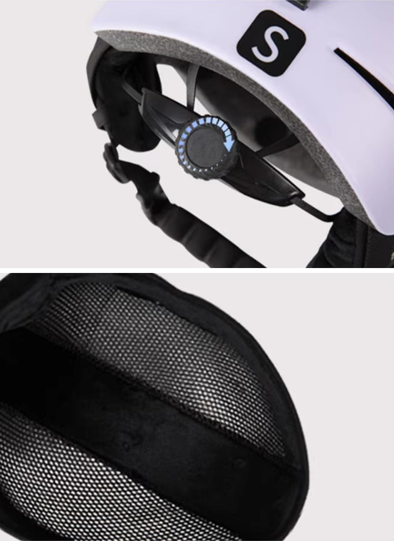 スキーヘルメット コージィ MONOTONEは軽くてシンプルなデザインが雪山コーデにも馴染むスキーヘルメット。ABS+PCシェルが衝撃をしっかり吸収し、内側は柔らかなインナーで快適なつけ心地です。後頭部のダイヤルでサイズ調整ができ、イヤーパッドと通気孔によりムレを抑えて長時間でも心地よく着用できます。軽さと安心感を両立させた設計のため、初めての方から上級者まで幅広くおすすめです。