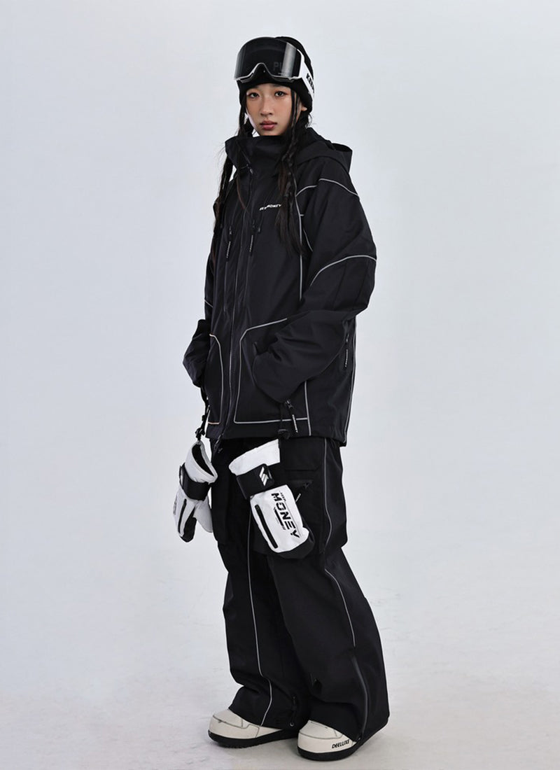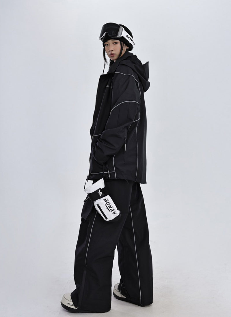 どんなスキーウェアにも合わせやすくて便利です。手持ちのジャケット数枚と試しましたが、全部相性良かったです。1本あると本当に重宝しますね。